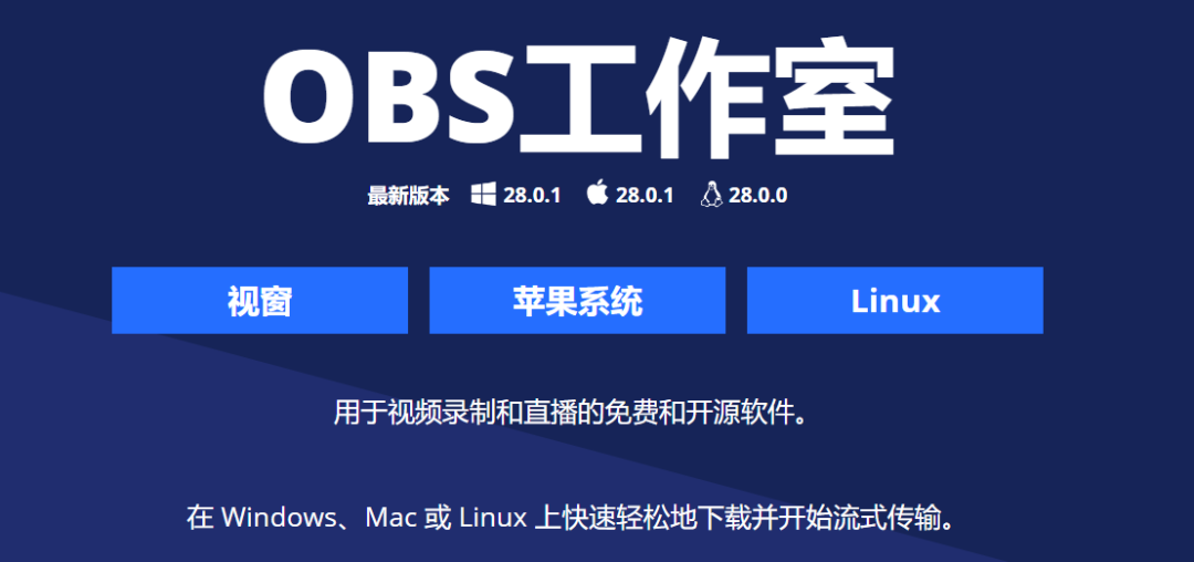 OBS 是一款用于「屏幕录制视频和实时直播」的软件,适用于 Linux、macOS 和 Windows,主要用于录制电脑屏幕的操作,保存为视频或者是推送到直播平台来实现直播教学。