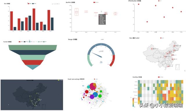 使用过echarts的朋友应该对pyecharts非常熟悉了,python对echarts的一个简单封装和调用,借助于echarts强大的数据可视化功能,pyecharts也可以轻松绘制各种图表,常见的柱状图、饼状图、散点图、曲线图,复杂的地图、树图、k线图、仪表盘、地理图、三维图,pyecharts都可以轻松办到,专业强大、制图漂亮、简单易用,如果你想绘制简洁大方的图表,基于web页面进行显示,可以使用一下pyecharts,效果非常不错: