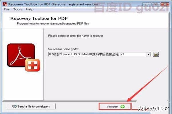 这时Recovery Toolbox for PDF会要求对文件进行分析,点击 Analyze,