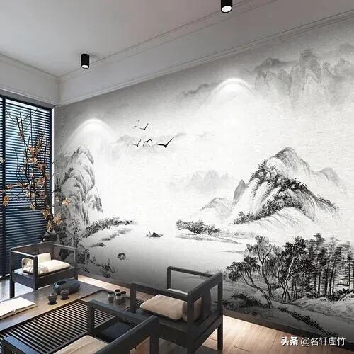 新中式背景墙图片大全(新中式装修用的淡淡的山水图案背景是什么材料)