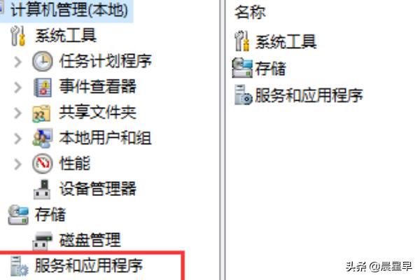 2、在“计算机管理器”对话框,点击“服务和应用程序”,之后选择“服务”,页面右侧打开服务管理器列表。