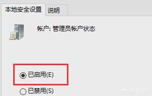 6、在“账户:管理员状态”属性中,将以启用选中即可